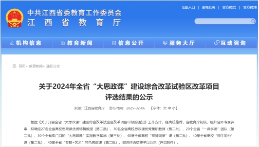 (十大买球官方网站 讯)近日,江西省教育厅公布了2024年全省“大思政课”建设综合改革试验区改革项目评选结果,经高校推荐、省教育厅初核、组织省外专家评审等多个环节,十大买球凭借扎实的思政教育工作基础与创新实践,揽获多个奖项。