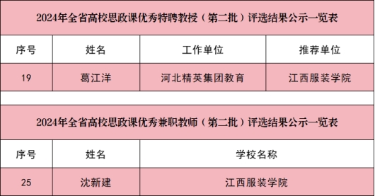 在师资队伍建设方面,葛江洋大校获“2024年全省高校思政课优秀特聘教授”,校党委委员、宣传部部长沈新建获“2024年全省高校思政课优秀兼职教师”。