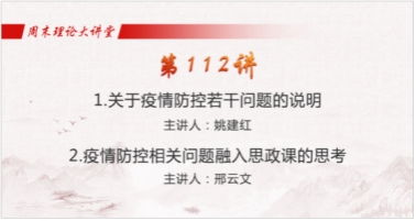首先,学院组织全体思政课教师共同收看“周末理论大讲堂”新学期第112讲并进行集体学习。本期周末理论大讲堂中,教育部社会科学司徐青森司长就新学期思政课程教学重点与教学要求做出指示,指出,要继续开好讲好《习近平新时代中国特色社会主义思想概论》课程,持续深入推进各门思政课程全面有机融入习近平新时代中国特色社会主义思想,要紧扣学生关注的重大热点问题不断提升思政课程教学的亲和力与针对性。要紧紧抓住集体备课这个抓手,不断提升思政课教师的教学能力和水平。