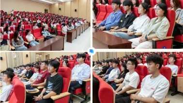 陈洋安同志讲述到,习近平总书记始终心系江西、厚爱江西,先后三次亲临江西考察。从井冈山革命烈士陵园庄严肃穆的纪念碑,到于都中央红军长征出发地纪念园飘扬的红旗,再到景德镇陶瓷企业中精美的瓷器展品,珍贵的影像依次展现。陈洋安同志为与会同学们细致讲解习近平总书记在江西考察时对红色文化传承、产业发展、生态保护等方面的重要指示。台下的同学们坐姿端正,目光紧紧锁定屏幕,不时低头认真记录。光影在他们专注的脸庞上闪烁,江西这片土地的深厚底蕴与发展活力,正通过总书记的足迹,深深印刻在每个人心中。