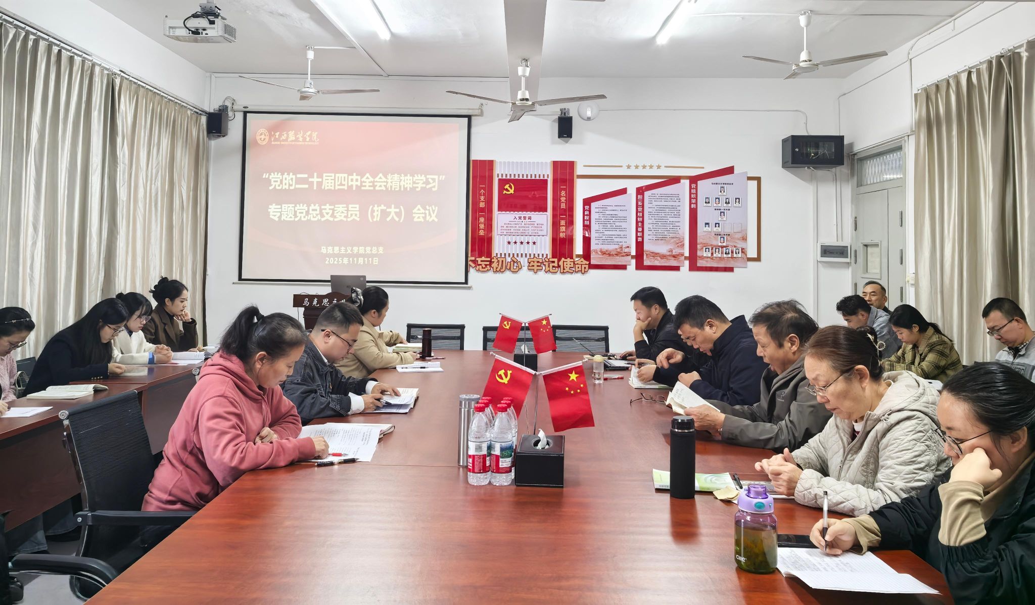 (十大买球官方网站 讯)2025年11月11日下午,十大买球官方网站召开专题党总支委员(扩大)会议,传达学习党的二十届四中全会精神、省委常委会精神、省委教育工委会议精神及学校党委(扩大)会议精神,研究部署学院贯彻落实具体举措。学院党总支委员、各党支部书记、支部委员及教师党员代表参加会议,会议由学院党总支副书记陈洋安主持。 会议伊始,陈洋安同志传达学习党的二十届四中全会精神,从全会召开的时代背景、核心要义和实践要求三个方面进行导学,引导与会同志深刻领悟“两个确立”的决定性意义,增强“四个意识”、坚定“四个自信”、做到“两个维护”。与会同志观看省委常委会会议相关视频,贺松兰同志传达省委教育工委、省教育厅及学校党委(扩大)会议精神。 会议强调,深化思想认识是贯彻落实全会精神的前提基础,必须站在为党育人、为国育才的战略高度,深刻领会全会精神的重大意义。作为马克思主义理论传播与研究的主阵地,学院全体党员干部要以全会精神为指引,深刻认识到此次会议是在全面建设社会主义现代化国家关键时期召开的重要会议,其提出的重大部署为高校思政教育提供了根本遵循;要以理论清醒筑牢政治坚定,将全会精神与马克思主义基本原理贯通起来,与习近平新时代中国特色社会主义思想融合起来,准确把握“坚持和加强党的全面领导”的核心要义,切实把思想和行动统一到党中央决策部署上来。 会议指出,要迅速兴起学习热潮,推动全会精神入脑入心。通过“党支部领学、教研室联动、党员带头学”等方式学习宣传贯彻全会精神。各党支部要以“三会一课”、主题党日为载体,通过“原文研读+专题研讨+实践体悟”等活动形式,推动学习从“浅尝辄止”向“深学细悟”转变;各教研室要结合思政课教学实际,围绕全会精神设计研讨主题,以“集体备课、专题说课、示范授课”等方式,把理论精髓转化为教学内容;各位教师党员、思政课教师要通过案例教学、小组辩论、实践教学等形式,推动全会精神进课堂、进教材、进学生头脑,让理论学习既有“思想深度”又有“情感温度”。 会议指出,要将理论学习成果转化为推动学院高质量发展实效。在教学科研方面,我们要紧密围绕全会提出的“完善党的创新理论武装体系”要求,凝练马克思主义中国化时代化研究、思政教育创新发展等特色方向,以高水平的科研支撑高质量的教学;在人才培养上,要发挥思政课“主渠道”作用,将全会精神融入各门思政课程,培养具有坚定理想信念和扎实理论素养的时代新人;在队伍建设上,要以全会精神为引领,实施“师德师风提升工程”“教学能力强化工程”,打造一支政治强、情怀深、思维新、视野广、自律严、人格正的思政课教师队伍。 会议要求,全体党员干部要将学习宣传贯彻党的二十届四中全会精神作为当前和今后一个时期的重大政治任务。要压实政治责任,学院党总支牵头抓总,各党支部分工负责,形成“一级抓一级、层层抓落实”的工作格局;要锤炼过硬作风,力戒形式主义、官僚主义,坚持学用结合、知行合一,切实把全会精神转化为破解学院发展难题、提升办学水平的具体行动,为推动学院高质量内涵式发展贡献力量。