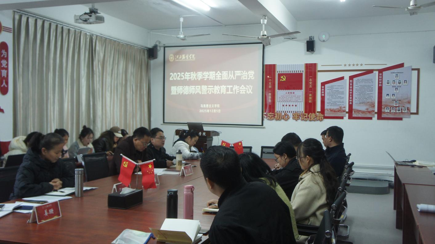 (十大买球官方网站 讯)为深入贯彻落实全面从严治党战略方针,大力弘扬教育家精神,切实加强师德师风建设,12月5日,十大买球官方网站召开2025年秋季学期全面从严治党暨师德师风警示教育工作会议。学院党政领导班子成员、各教研室思政课教师参加会议,会议由学院党总支副书记陈洋安主持。 会上,陈洋安同志带领大家集中学习《求是》杂志发表的习近平总书记重要文章《推进党的自我革命要做到“五个进一步到位”》。他强调,习近平总书记的重要文章为新时代推进党的自我革命提供了根本遵循,作为马克思主义理论教育主阵地,学院全体教职工必须深刻领会“五个进一步到位”的核心要义,将自我革命精神融入教育教学全过程,以理论清醒保证政治坚定,以作风过硬保障育人成效。 学院院长肖杰同志围绕“持之以恒推进全面从严治党”进行解读。他指出,推进全面从严治党需坚持“三个统一”:坚持思想引领与制度约束相统一,既强化理论武装又扎紧制度笼子;坚持日常监督与重点整治相统一,既抓早抓小、防微杜渐又靶向发力破解难题;坚持领导带头与全员参与相统一,既发挥“关键少数”示范作用又激活“绝大多数”内生动力,真正实现严在经常、管在日常。 学院副院长贺松兰同志组织学习了近年来教育系统内教师师德失范典型案例。她强调,思政课教师作为学生价值观的塑造者,必须以“言为士则、行为世范”的标准严格要求自己,坚决杜绝失德失范行为,守好思政课堂主阵地,当好学生成长引路人。 陈洋安在总结讲话中指出,当前是学院申硕工作关键时期,学院全体教师必须以教育家精神为引领,将师德师风建设与全面从严治党深度融合,努力成为“六有”思政课教师。陈洋安同志提出三点希望。一是铸牢信仰之魂,在理论武装上走深走实。要坚持读原著、学原文、悟原理,把领会“五个进一步到位”要求与教育教学实践结合起来,做到学思用贯通、知信行统一。二是涵养师德之风,在正心修身上行稳致远。要以典型案例为镜鉴,常怀敬畏之心、常修从教之德,以人格魅力涵养学生心灵。三是压实治党之责,在履职担当上求真务实。领导班子要履行“一岗双责”,既抓业务工作更抓作风建设;各教研室要强化阵地管理,把严的要求融入教研活动各环节;全体教师要严守纪律规矩,把自我约束融入日常工作生活,形成“人人有责、层层尽责、共同负责”的全面从严治党工作格局。 会上,还解读了学校师德考核实施办法,并就学院师德考核实施细则向全体教师征求意见。