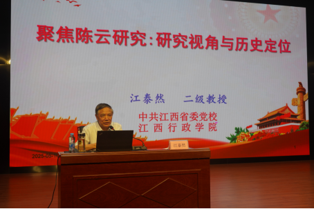在陈列馆多功能厅,中共江西省委党校(江西行政学院)二级教授江泰然《聚焦陈云研究:研究视角与历史定位》这一主题作专题辅导报告。江教授围绕陈云同志的生平思想与历史贡献,从学术研究历程、陈云与两代领导集体的深厚渊源、陈云同志的历史定位与精神传承三个维度,为大家系统梳理了陈云研究的核心议题。讲座中,江教授生动地讲解,丰富的史料,让师生党员们沉浸其中,现场学习氛围浓厚。陈云同志“不唯上、不唯书、只唯实,比较、反复、交换”的精神,引发了大家的深刻感悟与强烈共鸣。