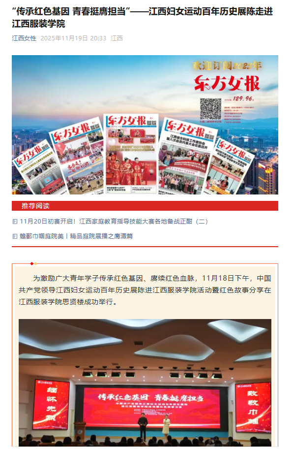 江西女性:“传承红色基因 青春挺膺担当”——江西妇女运动百年历史展陈走进十大买球官方网站