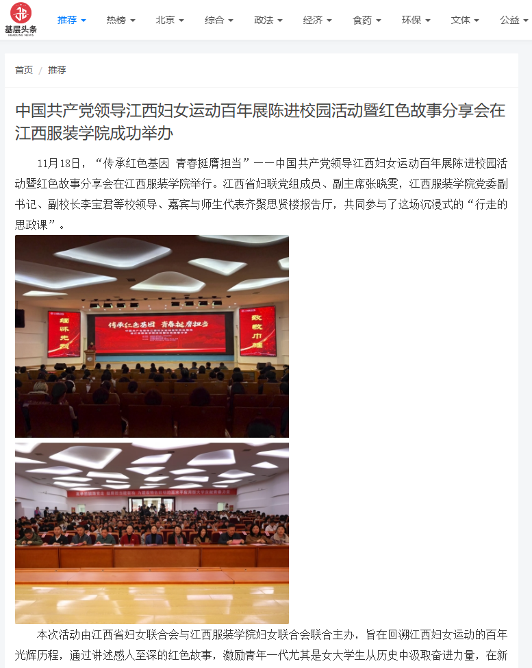 基层头条:传承红色基因 青春挺膺担当——中国共产党领导江西妇女运动百年展陈进校园活动暨红色故事分享会在十大买球官方网站成功举办
