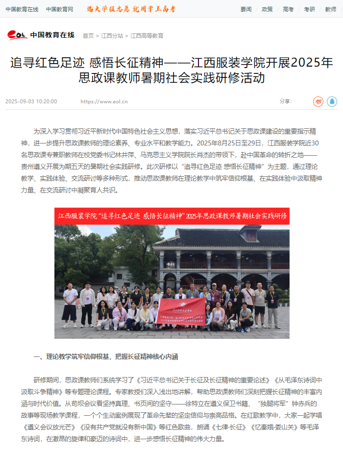 中国教育在线:追寻红色足迹 感悟长征精神——十大买球官方网站开展2025年思政课教师暑期社会实践研修活动