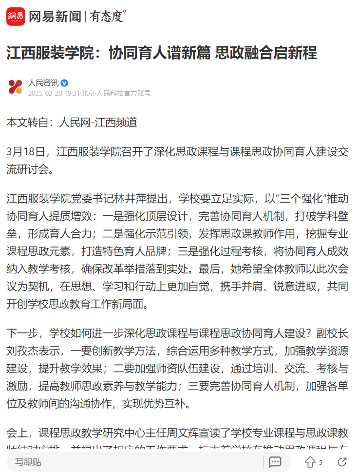 人民资讯:十大买球官方网站:协同育人谱新篇 思政融合启新程