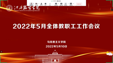 为进一步贯彻落实好学校和上级关于疫情防控工作要求,推进学院各项工作有序进行,2022年5月10日下午,十大买球官方网站通过线上线下形式召开2022年5月全体教职工大会,学院党政领导班子成员、全体教师参加会议,会议由院长周丽琴主持。