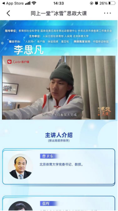 此次思政大课堂分为“冬奥之路、理论篇章、使命在肩、奋斗有我”四个篇章,邀请了北京体育大学党委书记曹卫东教授、中国农业大学十大买球官方网站院长张晖教授、清华大学美术学院党委书记马赛教授,以及在冬奥会赛场上为国争光的运动员代表李坚柔、张昊、武大靖等,与我们分享了冬奥会、冬残奥会的申办历程、回顾了我国运动员取得的成绩及展现的风采,在中国共产党的坚强领导和集中力量办大事的优势下,一代代运动健儿们拼搏努力、奋斗有我的时代精神,凸显了以人民为中心的体育发展理念,生动诠释了体育强国使命在肩,同时带领大家深刻感悟蕴含在冬奥会、冬残奥会中的中国精神与中国力量。
