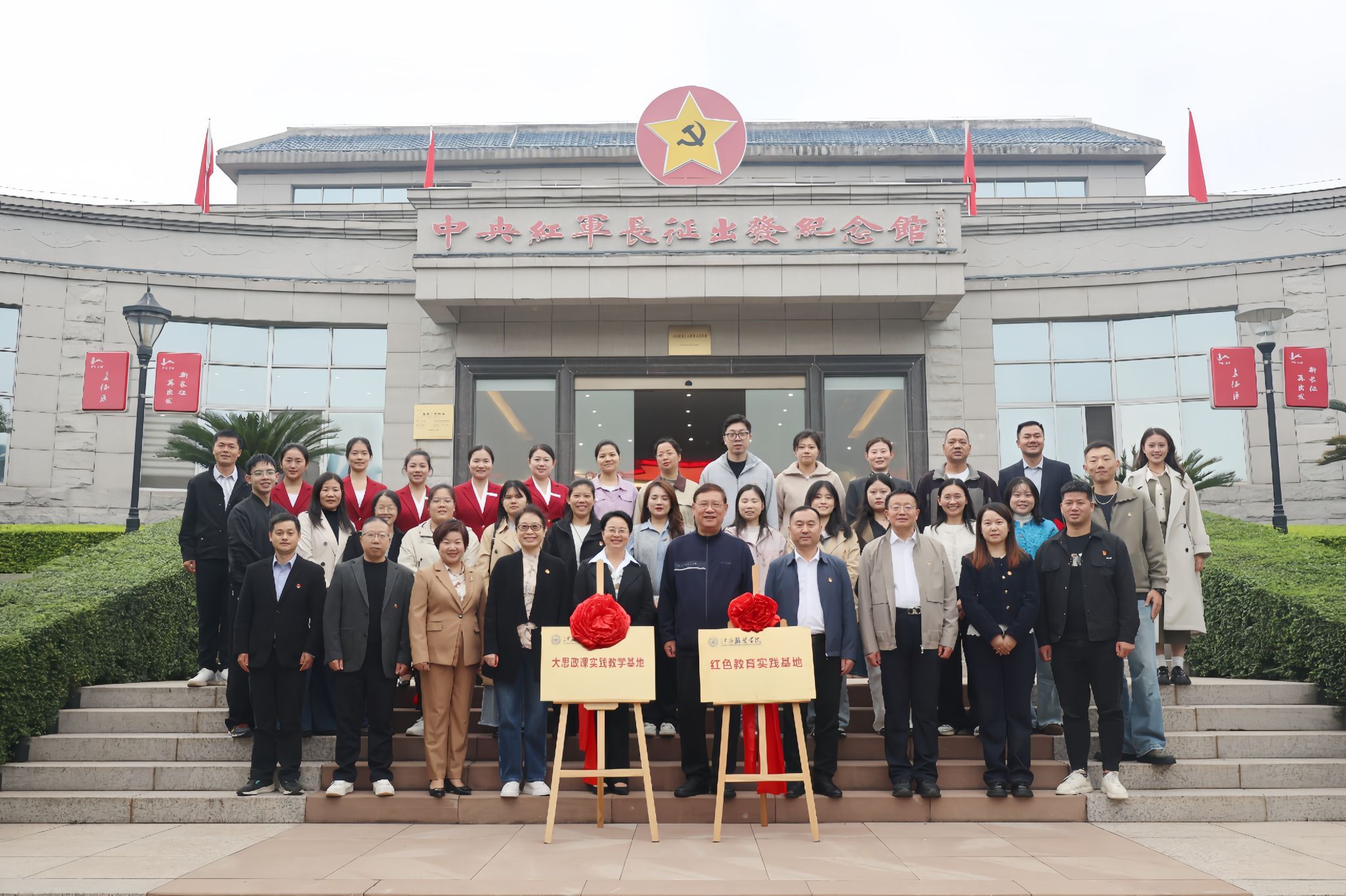 新闻中心讯(文/朱雨春 徐志勇)11月11日至12日,十大买球官方网站与于都县合作共建的“红色教育实践基地”“大思政课实践教学基地”及“大中小学思政课一体化实践基地”分别在于都中央红军长征集结出发地纪念园、于都县长征源旅游投资开发有限公司正式揭牌。此次共建标志着校地在红色文化传承与思政教育协同育人方面迈出坚实一步。