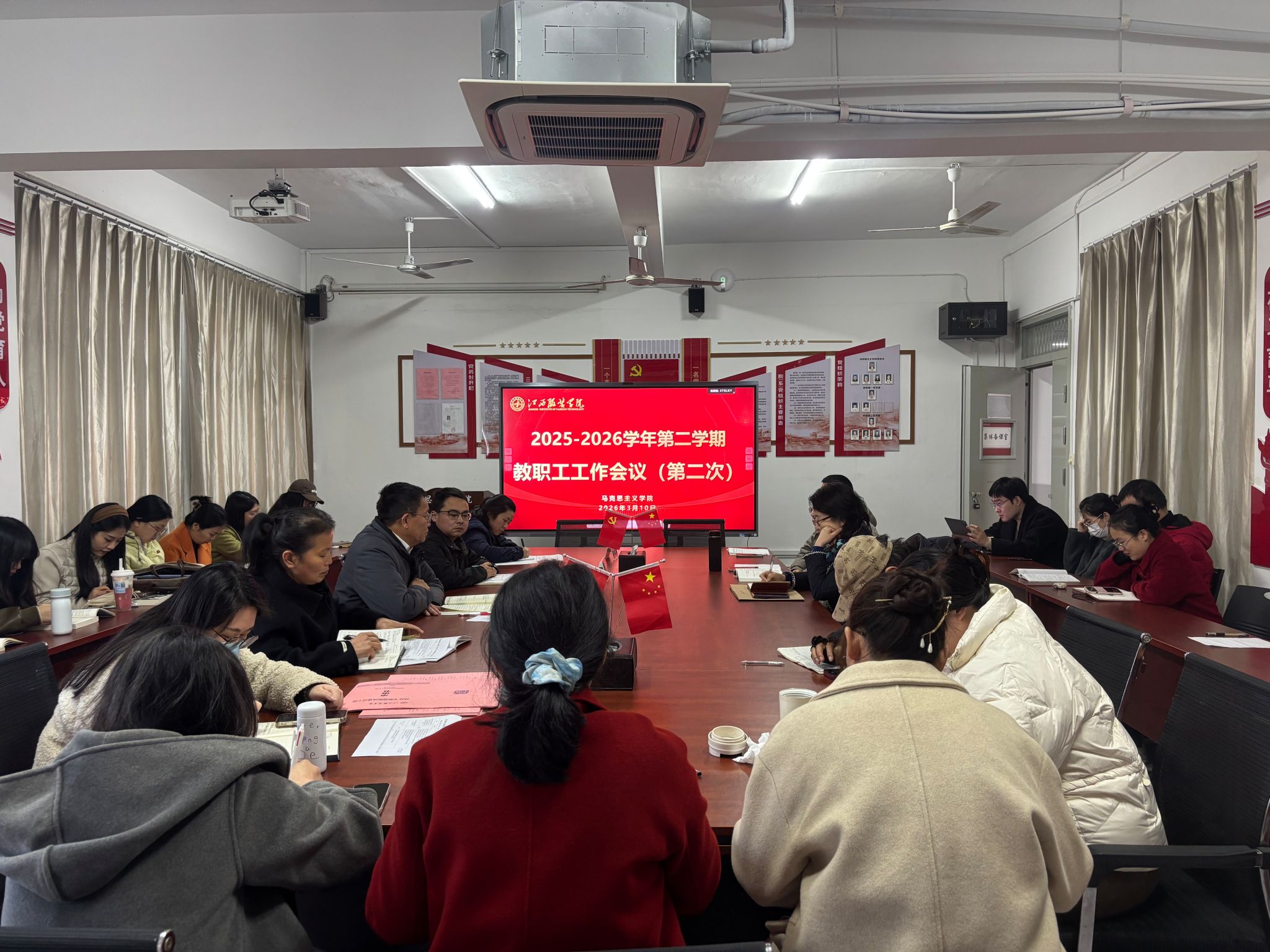 (十大买球官方网站 讯)2026年3月10日,十大买球官方网站召开2026年春季学期教职工工作会议(第二次)。学院全体教职工参会,会议由学院院长肖杰主持。 会上,学院党总支副书记陈洋安传达学习了学校2026年春季开学干部教师大会精神。详细传达了涂燕萍理事长提出的“四个对接”“三个对齐”“十个升维”具体要求,以及涂燕萍理事长对学校管理干部、科研骨干和全体教职工履职尽责、奋勇争先的殷切希望;传达了校党委书记林井萍代表学校党委、行政所作的工作部署,解读了学校对2025年党政工作的系统回顾,以及对2026年重点工作的周密安排。 肖杰院长传达了执行校长尚钢教授题为《大学之思 大学之治——大学治理与干部能力素质文化的构建》的工作报告,深入解读了报告围绕“如何办好一所大学、如何做好一名干部”两大核心提出的发展理念,以及“质量、特色、服务”发展导向和校校、校企、校地“三校合作”等关键举措,为学院对接学校发展、谋划自身工作提供了清晰指引。 肖杰院长指出,此次学校春季开学干部教师大会既是学校2026年工作的行动纲领,更是学院锚定“十五五”发展方向、深耕思政课教育教学、落实立德树人根本任务的根本遵循,对推动学院各项工作提质增效具有全局性、指导性意义。希望全体教职工要坚守育人初心,以高度的政治自觉践行“马院姓马、在马言马”的根本定位;要主动担当作为,切实发挥主人翁精神,立足本职、奋勇争先。他要求,全体教职工要紧扣学校部署、结合学院实际,认真谋划个人工作与学院发展的结合点,既要脚踏实地抓落实,又要仰望星空谋长远,推动学院各项工作与学校发展同频共振、同向发力,以优异成绩迎接学校建校35周年。 会上学院就教学科研、读书活动、课程备课等工作进行了部署。
