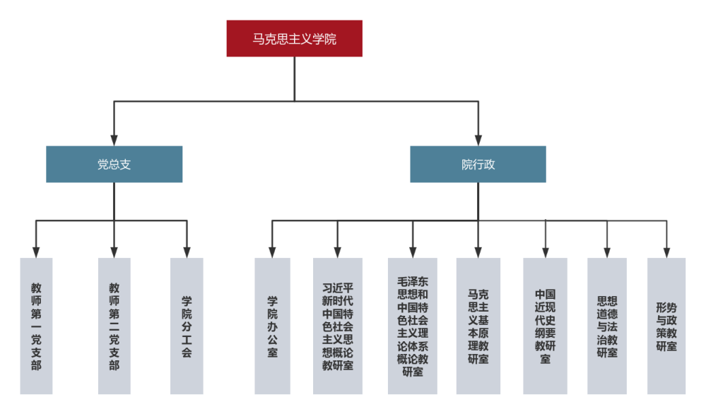 十大买球官方网站党总支组织机构分设教师第一党支部和教师第二党支部;学院教学机构是按课程设置六个教研室,即习近平新时代中国特色社会主义思想概论教研室、思想道德与法治教研室,中国近现代史纲要教研室、马克思主义基本原理教研室、毛泽东思想和中国特色社会主义理论体系概论教研室、形势与政策教研室。